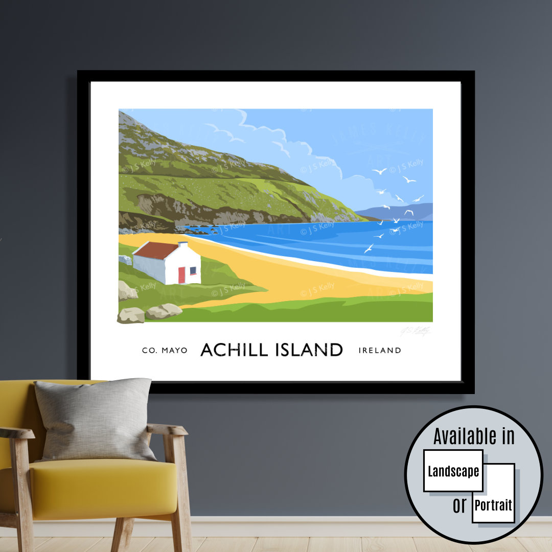 Stylish Art Deco print of Keem Bay on Achill Island off the West of Ireland. Inspired by vintage railway posters of 1920s and 1930s.